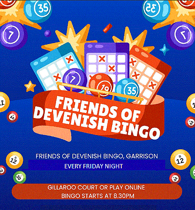 Friends of Devenish Bingo will be held in the Gillaroo Court at 8.30pm on Friday.